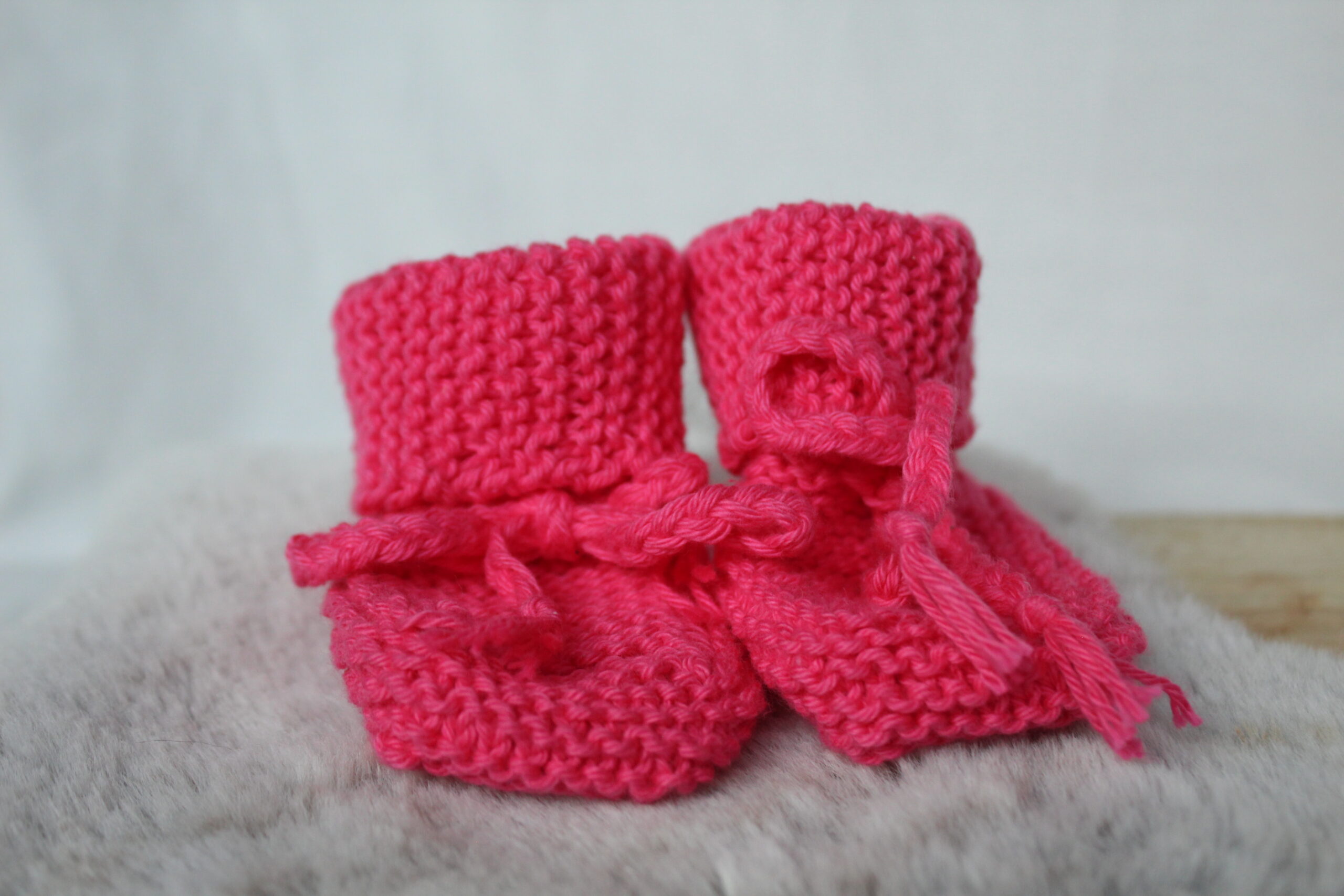Gebreide sloffen in een leuke hard roze kleur! In de naar 0-3 maanden